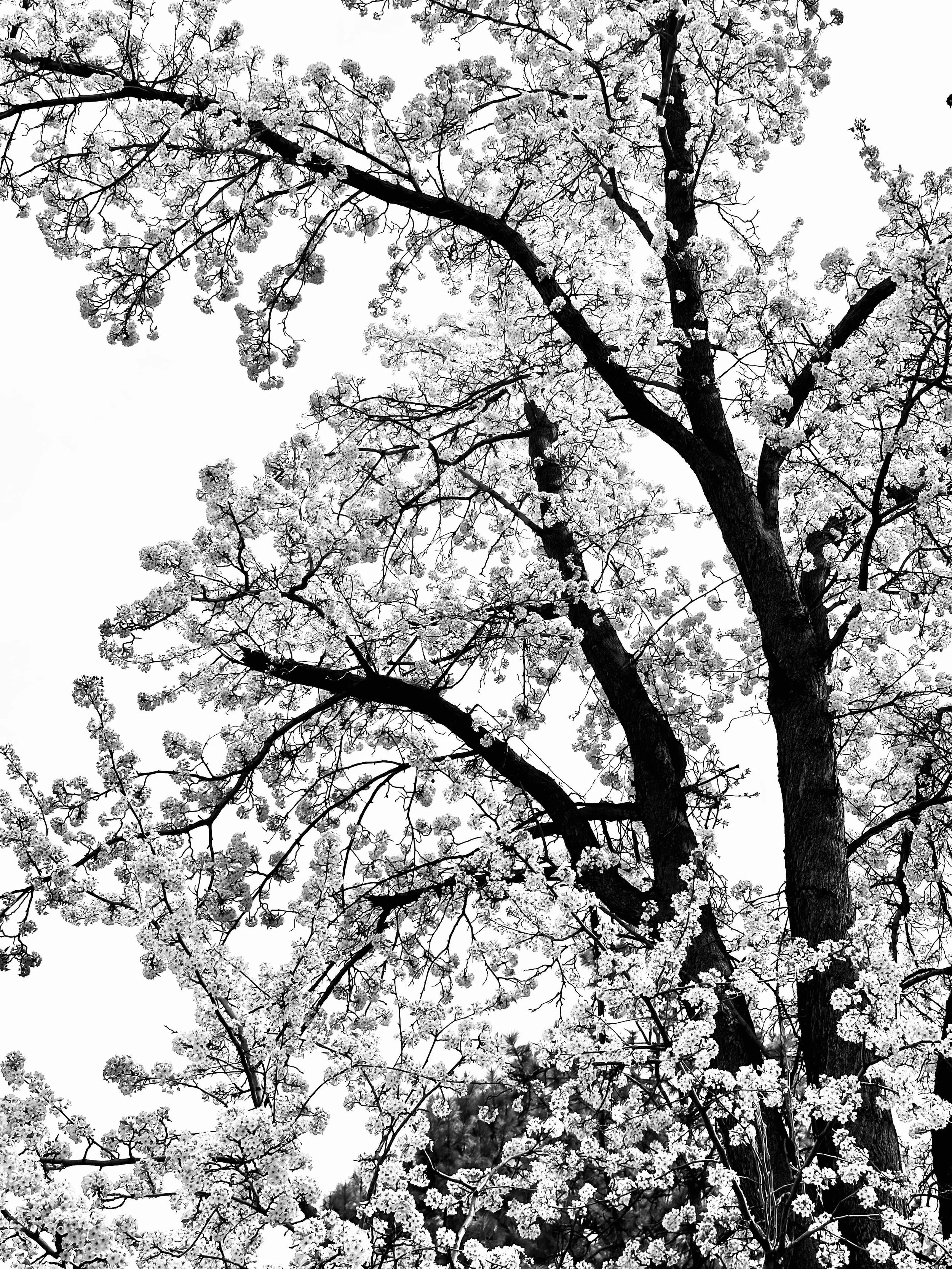 This black-and-white photograph captures the beauty of a flowering tree, a symbol of nature’s quiet unfolding and constant evolution. The delicate petals and graceful branches, bathed in contrast, reflect the subtle yet powerful way the world evolves—each bloom a fleeting moment of transformation.